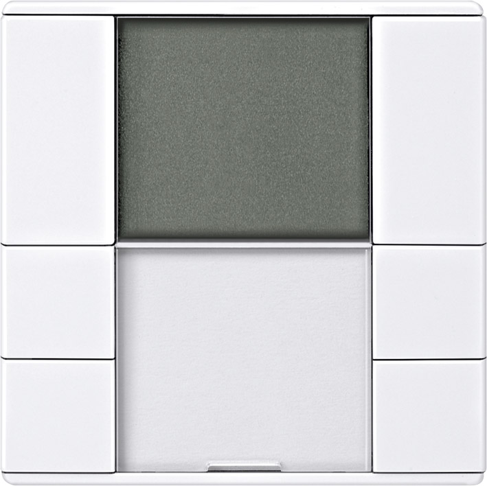 KNX valve drives or to trigger switch actuators and heating actuators. With the white backlit display for showing e.g. the time, date, temperature and operating mode. Menu for setting default operating modes, setpoint value, working/non-working day (external trigger), display mode, time, switching times and brightness of the display.