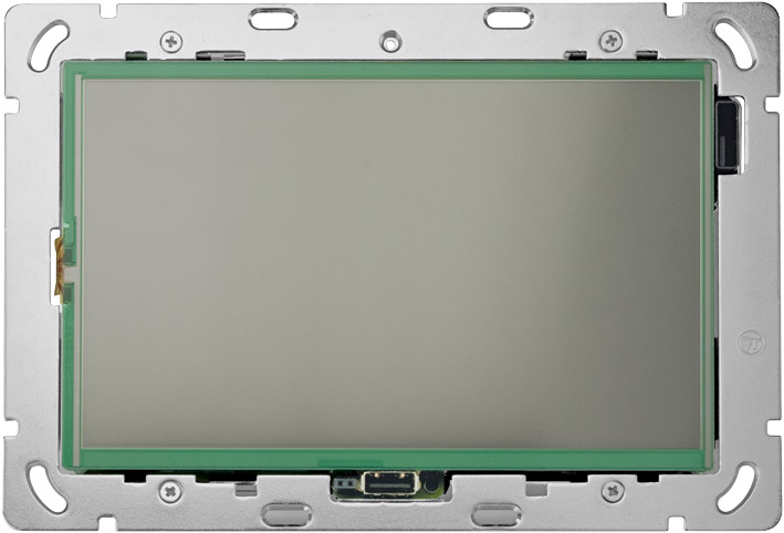 The 7" touch panel has a LAN (10/100 Mbit/s), KNX and USB interface.. With integrated loudspeaker.