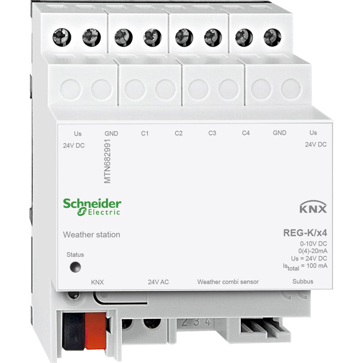 Accessories: Analogue input module REG/4-gang, art. no. 682192. Weather combi-sensor/DCF-77, art. no. 663692. Wind sensor with 0-10 V interface, art. no. 663591. Wind sensor with 0-10 V interface and heating, art. no. 663592. Rain sensor, art. no.