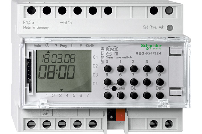 Quartz-controlled four-channel year time switch.
