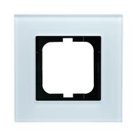 Flush mounting cover frame for 1-gang cover plated accessories, such as switches. Suitable for both horizontal and vertical installation. Material glass. Cleaning with a mild, standard household detergent. The use of strong dissolvents should be avoided.