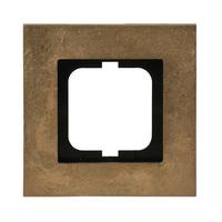 Flush mounting cover frame for 1-gang cover plated accessories, such as switches. Suitable for both horizontal and vertical installation. Material bronze casting. Cleaning with a mild, standard neutral household detergent. The patinated surface can be polished with a silver polish, in which case the typical colour of bronze is altered temporarily. The use of strong dissolvents should be avoided.