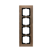 Flush mounting cover frame for 1-gang cover plated accessories, such as switches. Suitable for both horizontal and vertical installation. Material bronze casting. Cleaning with a mild, standard neutral household detergent. The patinated surface can be polished with a silver polish, in which case the typical colour of bronze is altered temporarily. The use of strong dissolvents should be avoided.