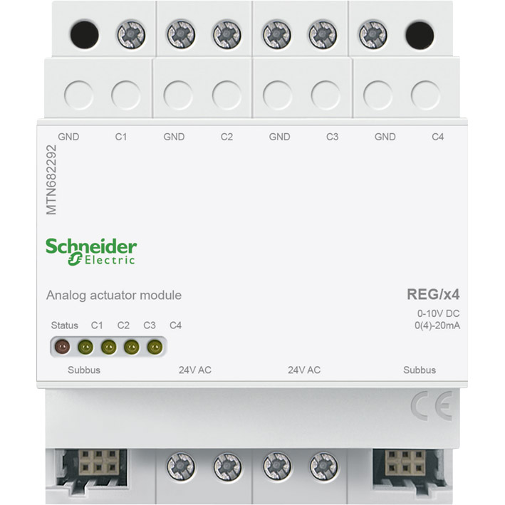 ˜ In KNX, to be completed with: Analogue actuator REG-K/4-gang,