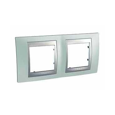 Unica Top - cover frame - 2 gangs, H71 - Fluor Green/aluminium