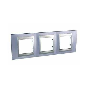 Unica Top - cover frame - 3 gangs, H71 - Beryl Blue /aluminium