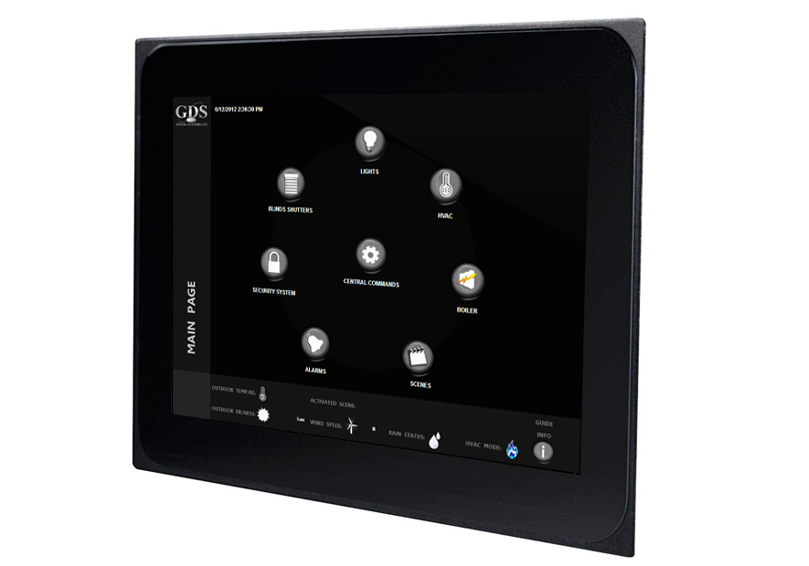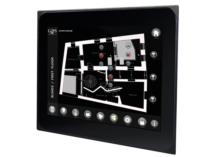 Android Touch Panel This touch panel with a 7" multitouch display is designed for in-wall installation. It provides the same degree of operating ease as a smartphone, but has a far longer service life thanks to its industrial build quality. * Multitouch panel with continuous glass surface * Microphone and speaker with echo cancelling for hands-free intercom * Sensors for brightness * Android * All apps available. Weather, mail, movies, radio,…unlimited * Flush-fitting installation using a plaster-in housing or flush mounting using a flush-mounted box
