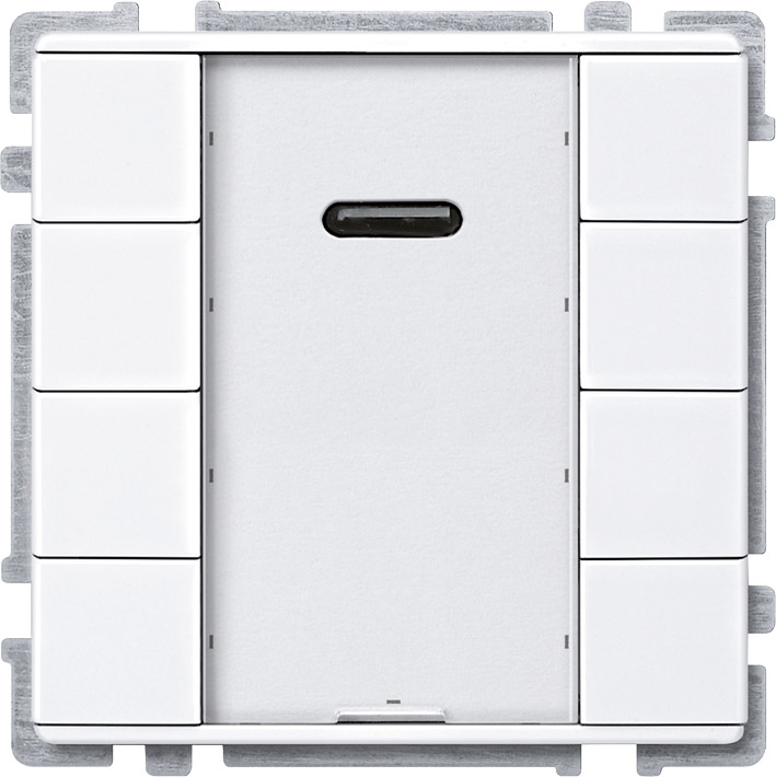 with a Merten IR remote control Distance. Many other IR remote controls (e.g. existing TV or CD player remote controls) can be taught to the pushbuttons.
